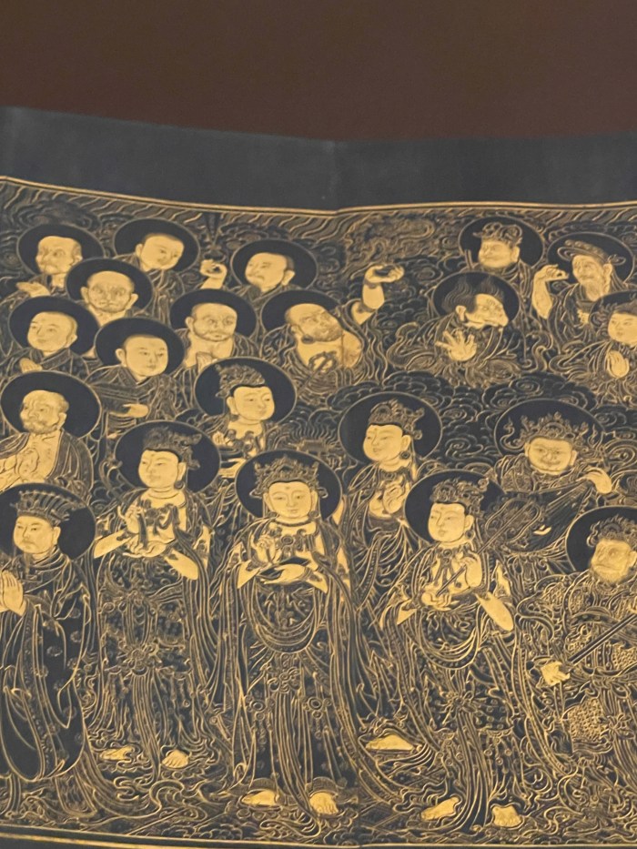 As Taiwan’s National Palace Museum exhibition explains, “The Lotus Sūtra can be roughly divided into three parts. In the first, Śakyamunī Buddha explains that all beings have the potential for Buddhahood. The second introduces the idea that the Buddha’s lifespan is immeasurable and encourages all beings to emulate bodhisattvas to save all sentient beings and to propagate the teachings of the Lotus Sūtra. The third focuses on various bodhisattvas, including Bhaiṣajyarāja and Avalokiteśvara, and tells the stories of their connection with the sūtra and how Avalokiteśvara saves sentient beings in different ways in order to inspire followers.”