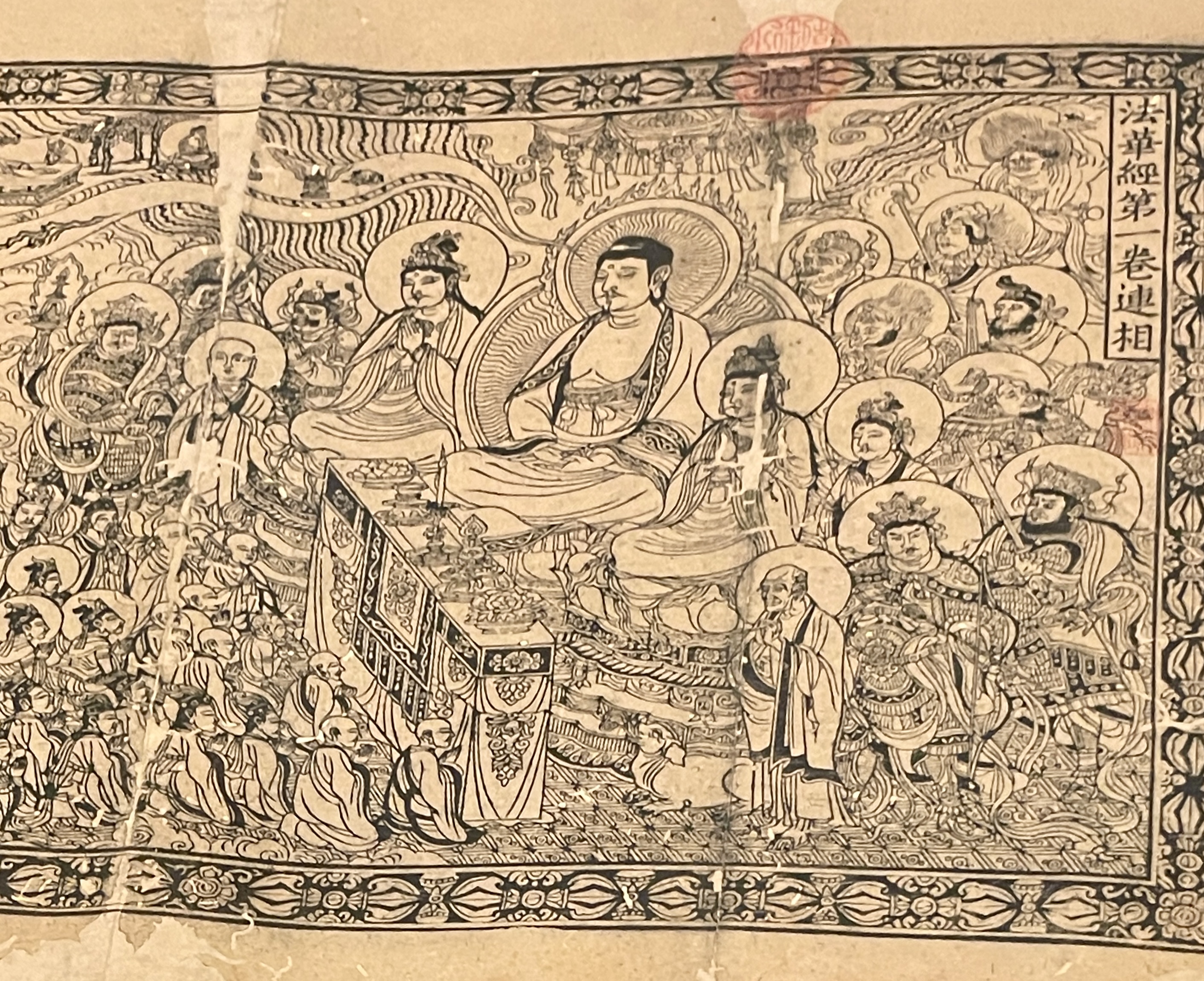 As Taiwan’s National Palace Museum exhibition explains, “The Lotus Sūtra can be roughly divided into three parts. In the first, Śakyamunī Buddha explains that all beings have the potential for Buddhahood. The second introduces the idea that the Buddha’s lifespan is immeasurable and encourages all beings to emulate bodhisattvas to save all sentient beings and to propagate the teachings of the Lotus Sūtra. The third focuses on various bodhisattvas, including Bhaiṣajyarāja and Avalokiteśvara, and tells the stories of their connection with the sūtra and how Avalokiteśvara saves sentient beings in different ways in order to inspire followers.”